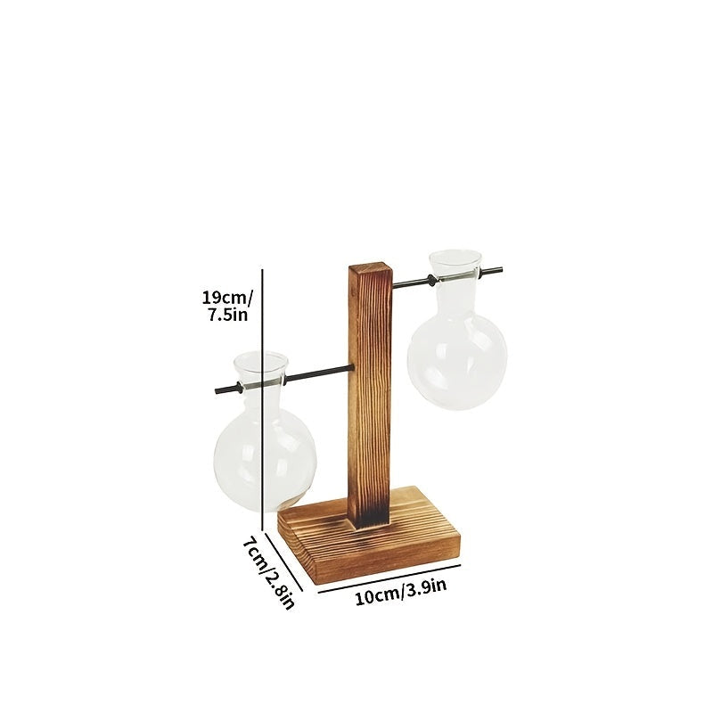 Vase hydroponique en verre et bois – Design créatif pour décoration de table